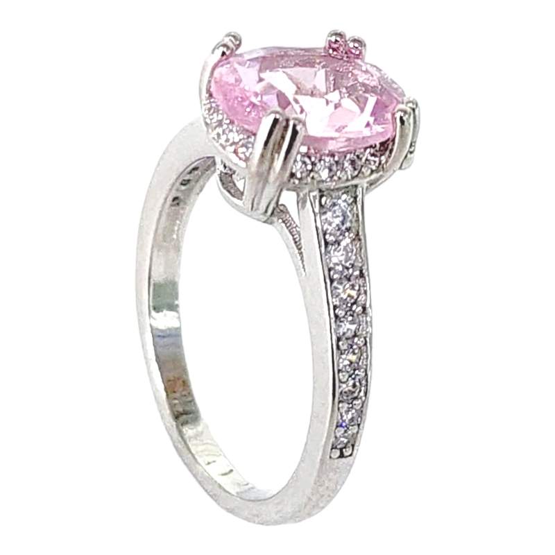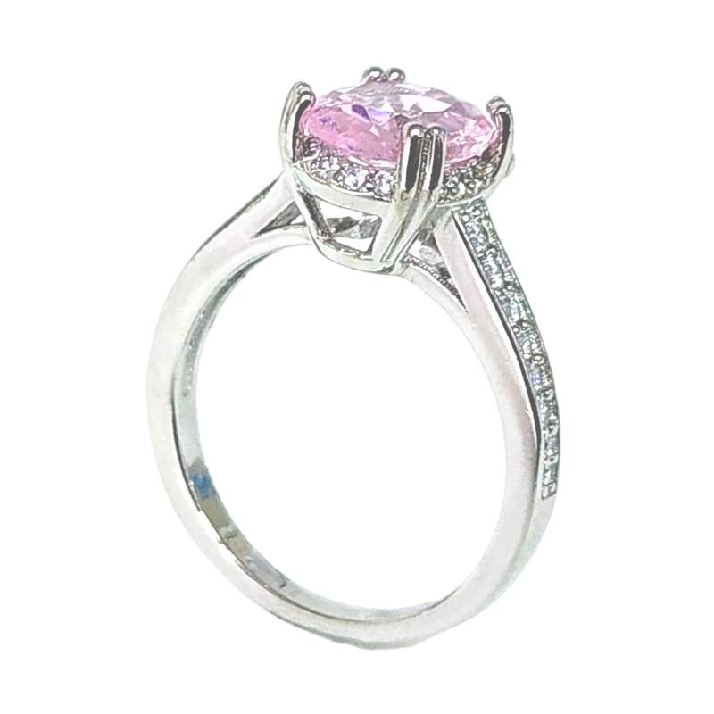 ANILLO CIRCONIA OVALADA ROSADA CON CIRCONIAS A LOS LADOS