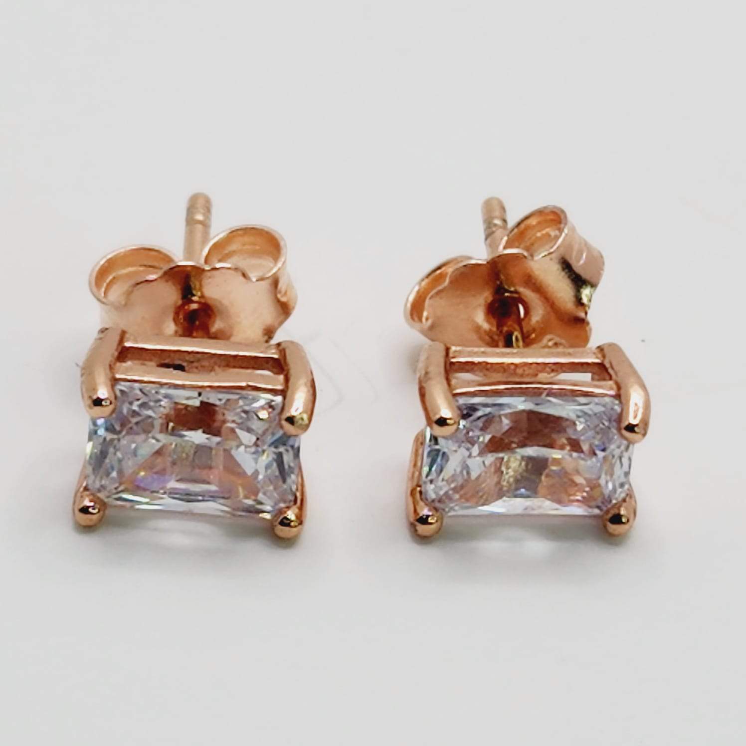 ARETE ORO ROSA DE POSTE CON CIRCONIA RECTANGULAR BLANCA