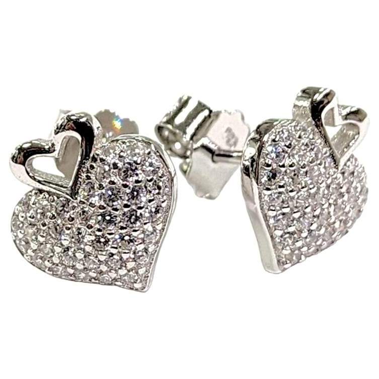 ARETE DE CORAZON CON MICROCIRCONIAS BLANCAS Y CORAZON ARRIBA LISO DE POSTE PLATEADO