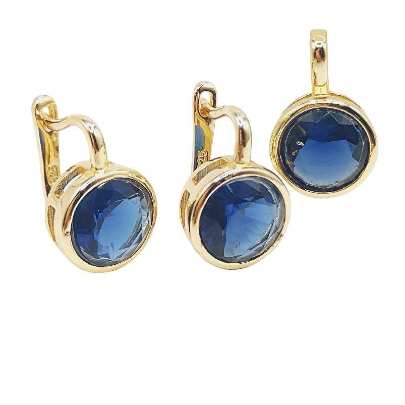 JUEGO DE DIJE Y ARETES AZUL REDONDO DORADO BROCHE INGLES