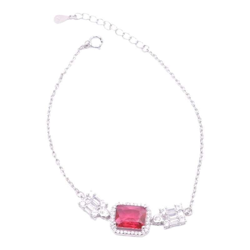 PULSERA CIRCONIA RECTANGULAR FUCSIA CON BAGGETTES BLANCOS A LOS LADOS
