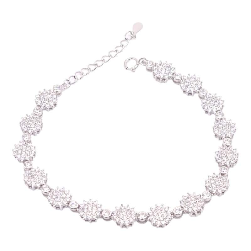 PULSERA CON FLORES DE CIRCONIAS BLANCAS