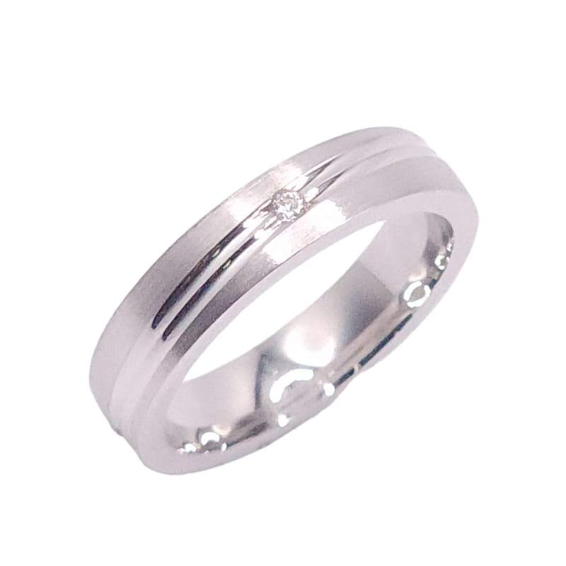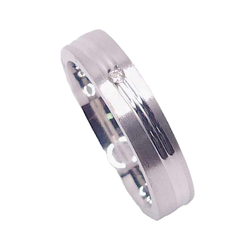 ARGOLLA MATE CON DOBLE LINEA BRILLANTE OBLICUA ALREDEDOR DE LA ARGOLLA Y UNA CIRCONIA AL CENTRO 4MM