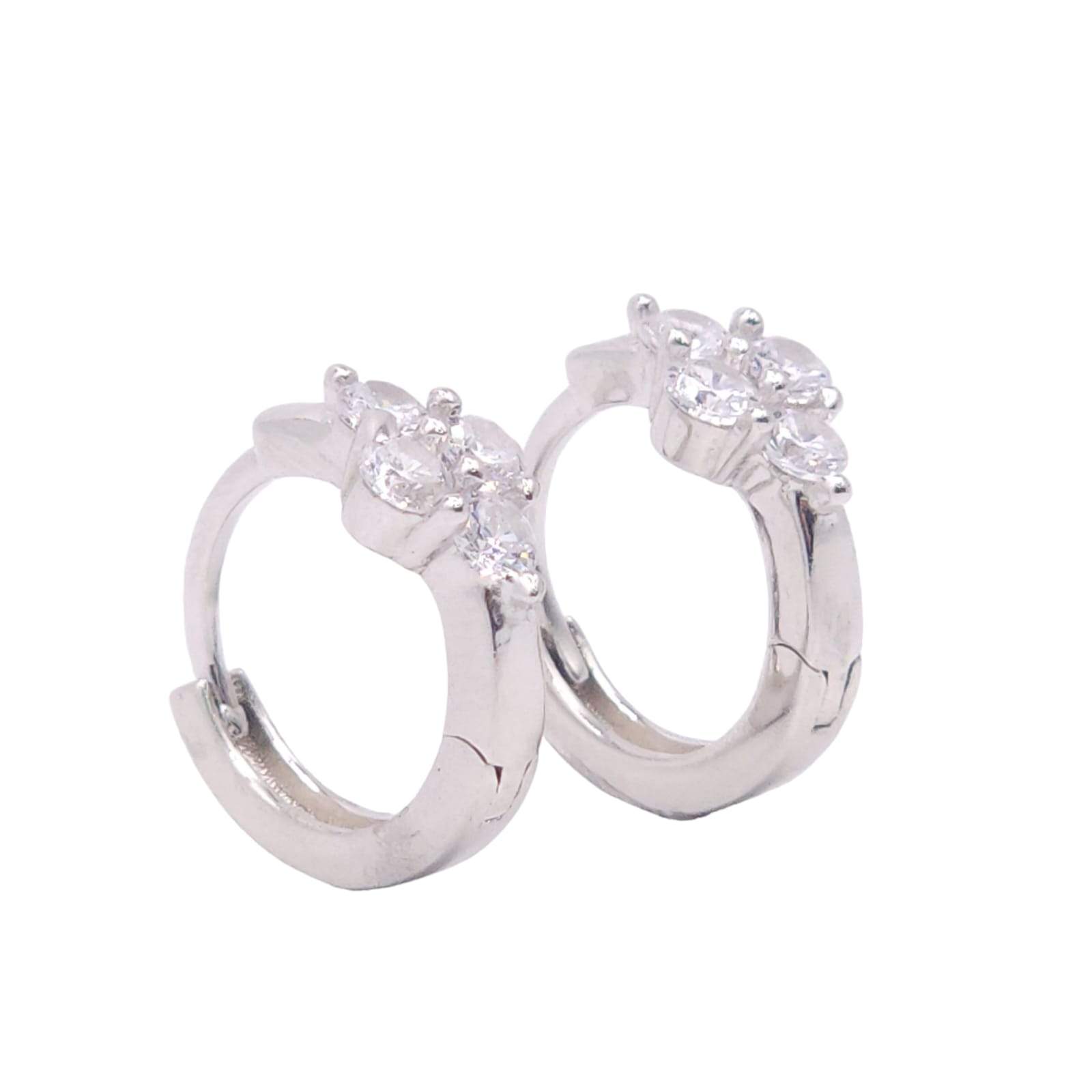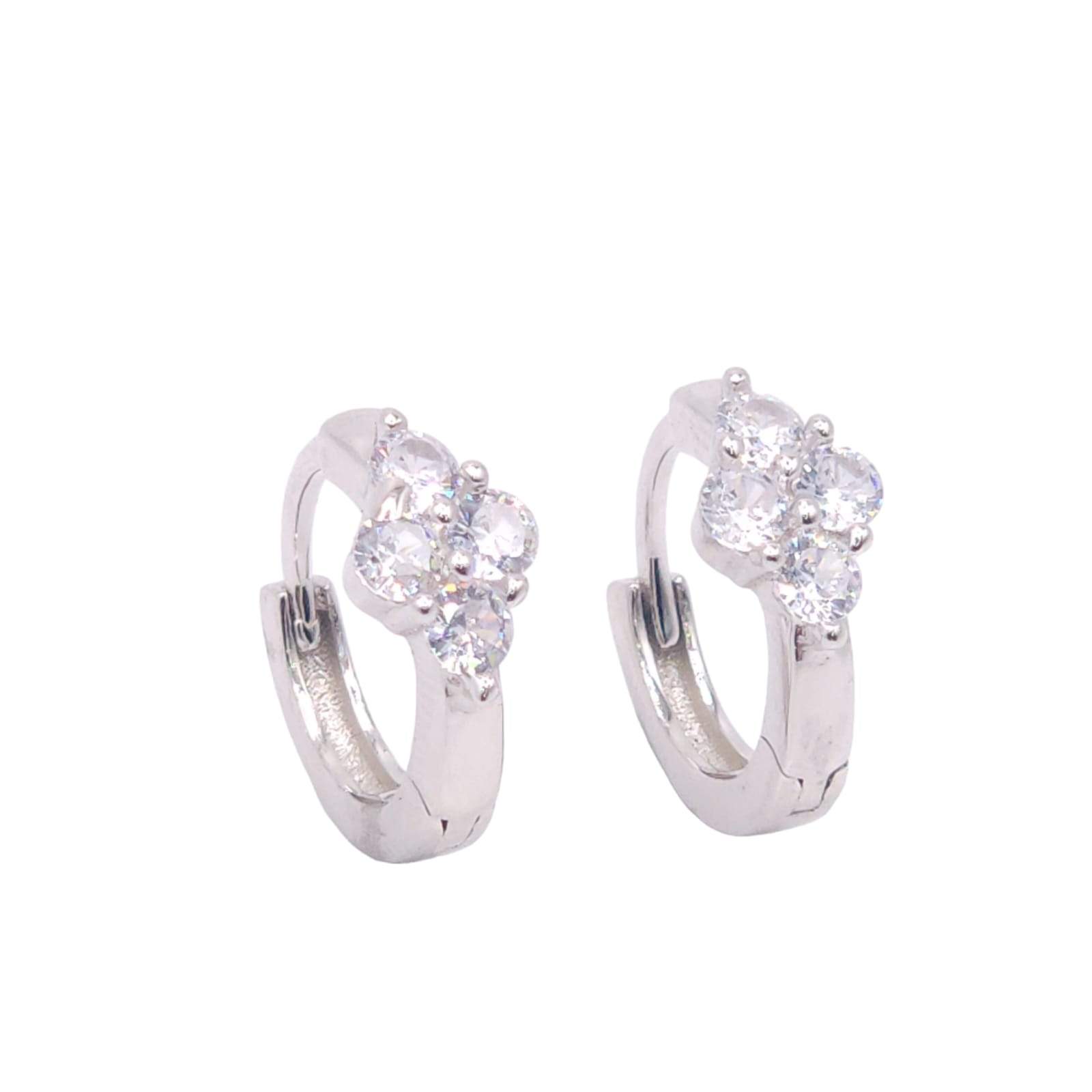 ARGOLLA HUGGIE CON 4 CIRCONIAS FRONTALES FORMANDO UNA FLOR MIDE 1.2 CMS