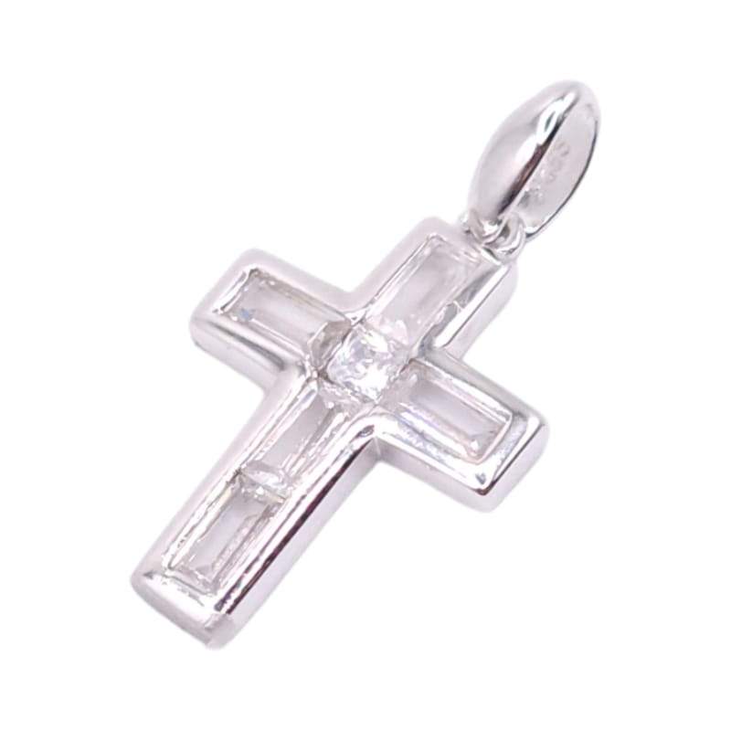 DIJE DE CRUZ BICELADO CON CIRCONIA TIPO BAGUET Y UNA CIRCONIA REDONDA EN EL CENTRO