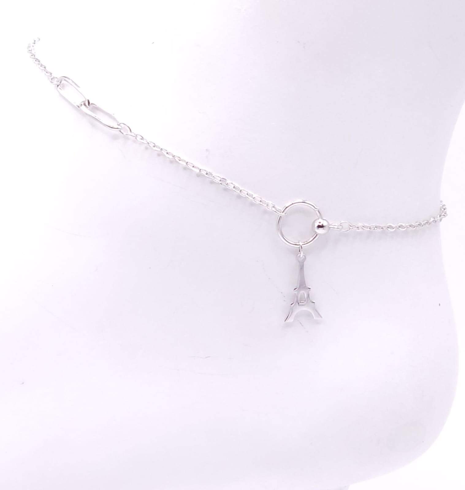 TOBILLERA CON DIJE LISO DE SILUETA DE TORRE EIFEL