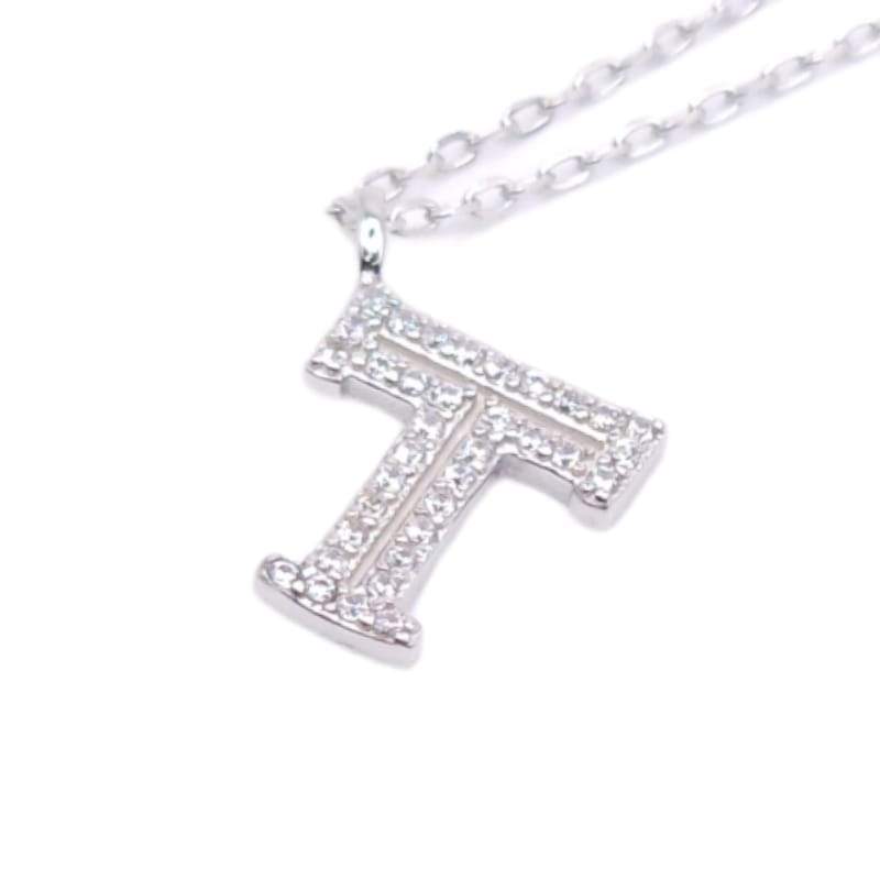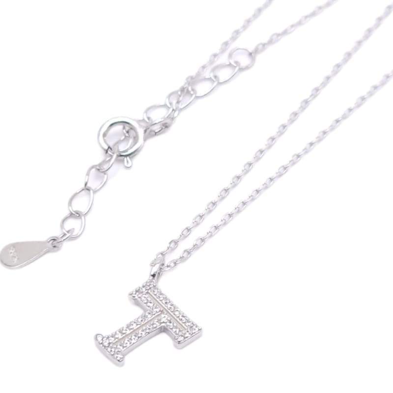 CADENA CON DIJE DE INCIAL T CON CIRCONIAS BLANCAS DE 1 CM Y CADENA DE 50 CMS