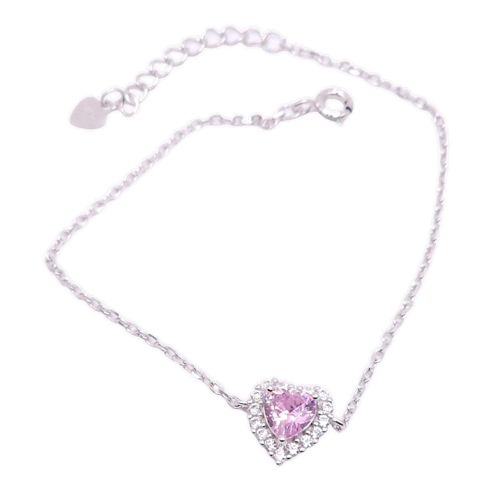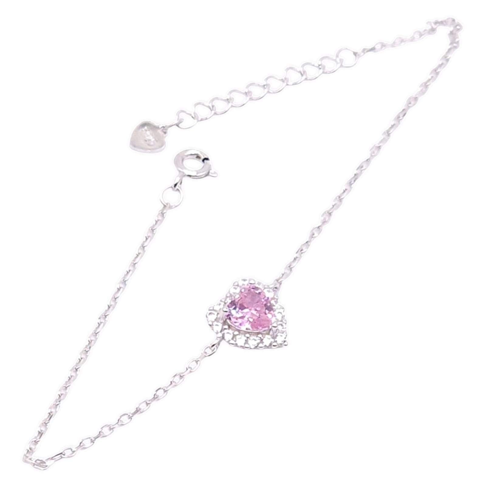 PULSERA DE CORAZON CON CIRCONIA ROSA CON CIRCONIAS BLANCAS ALREDEDOR