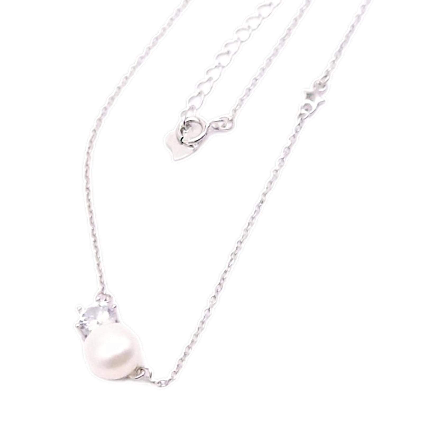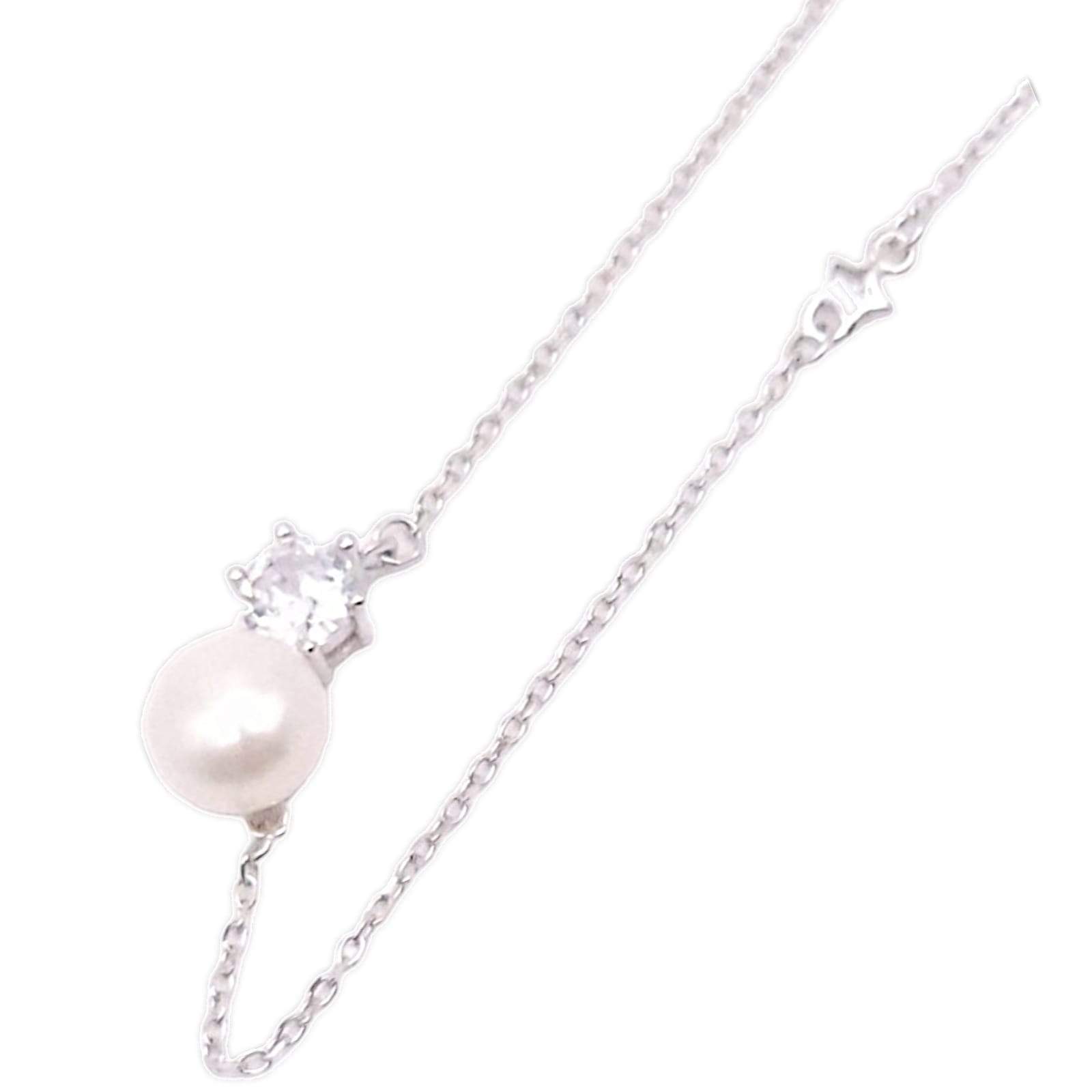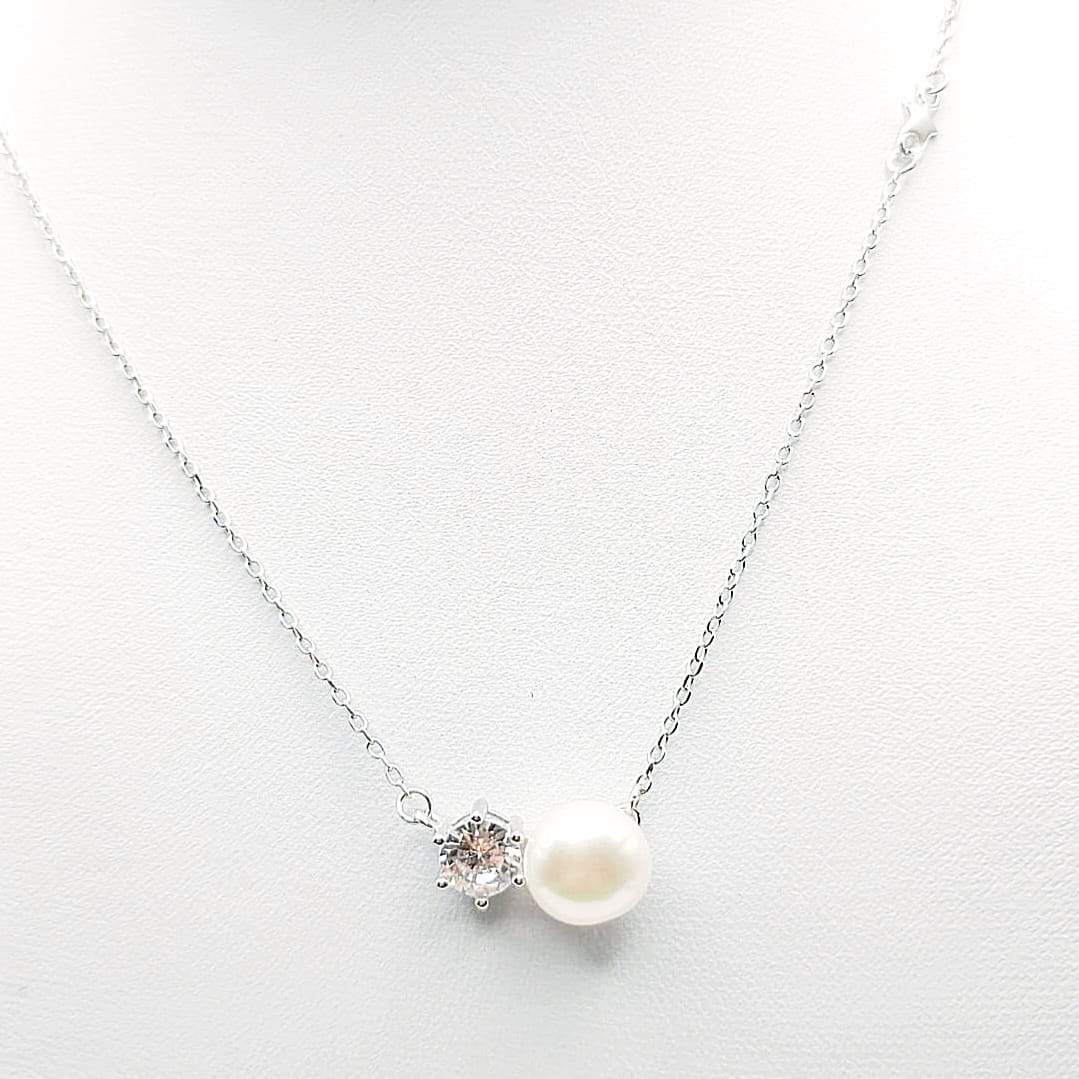 GARGANTILLA PERLA DE RIO REDONDA CON UNA CIRCONIA BLANCA