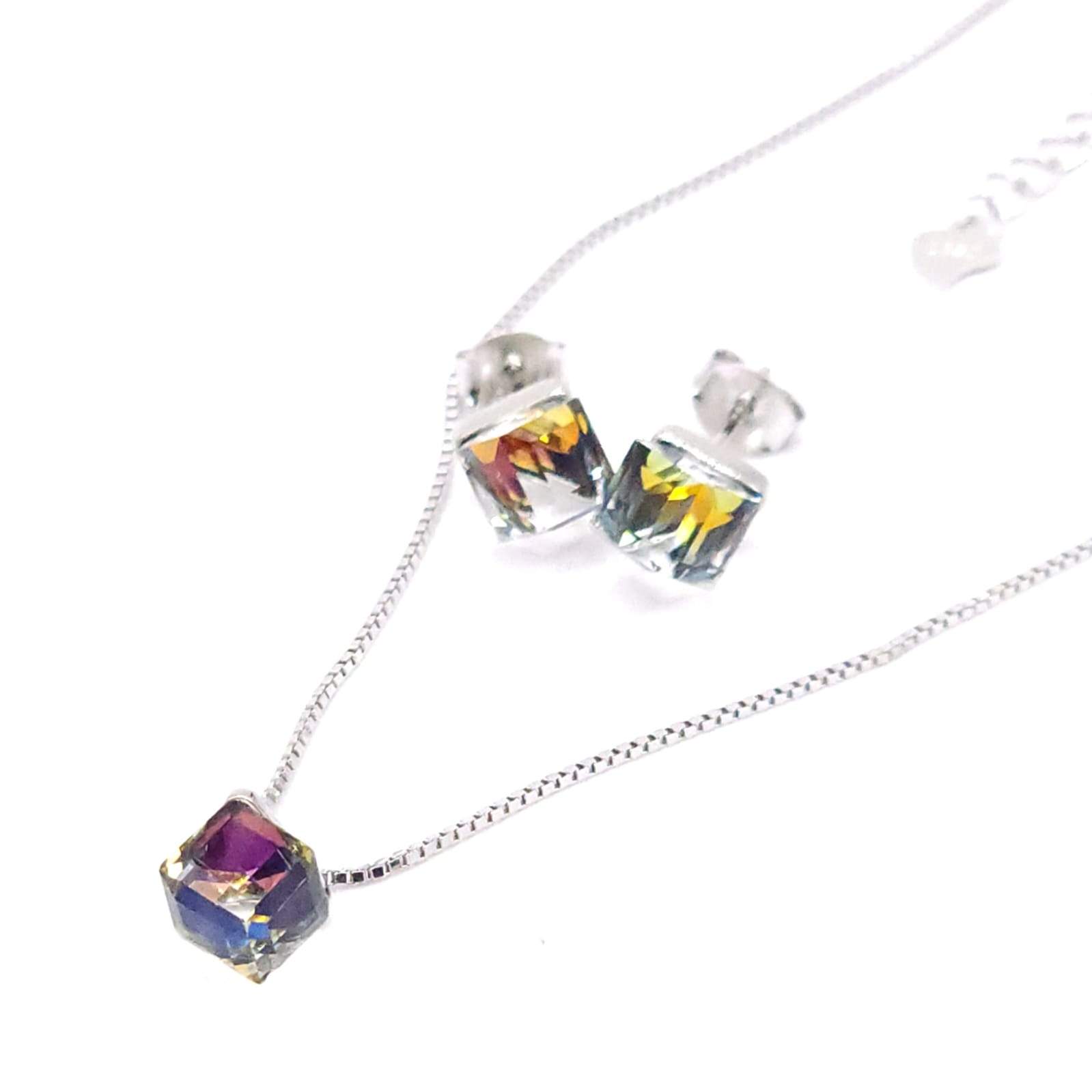 JUEGO GARGANTILLA Y ARETES CUARZO DE COLORES TONALIDAD SEGUN ENFOQUE DE LA LUZ