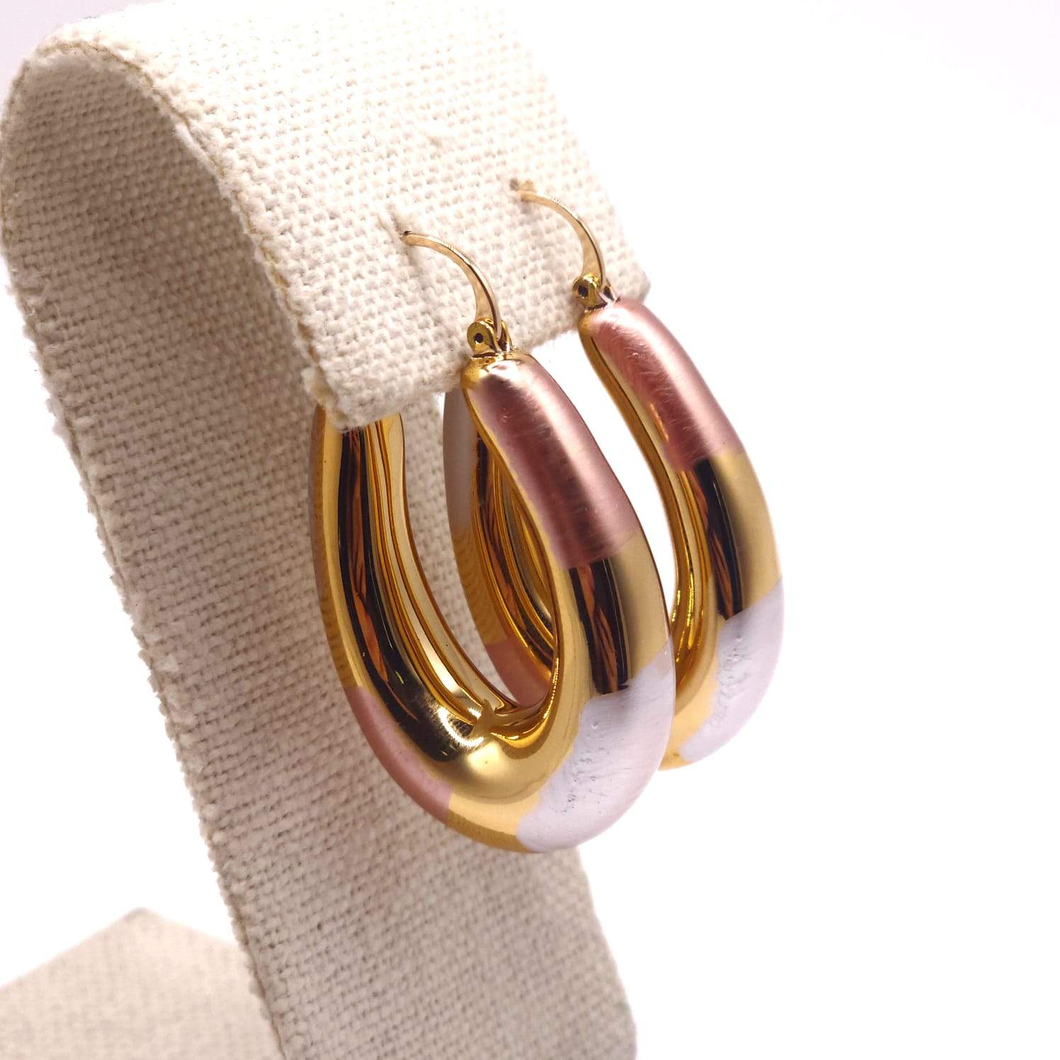 ARGOLLAS GRUESAS CON CHAPA DE ORO Y PINTURA BLANCA Y ROSADA