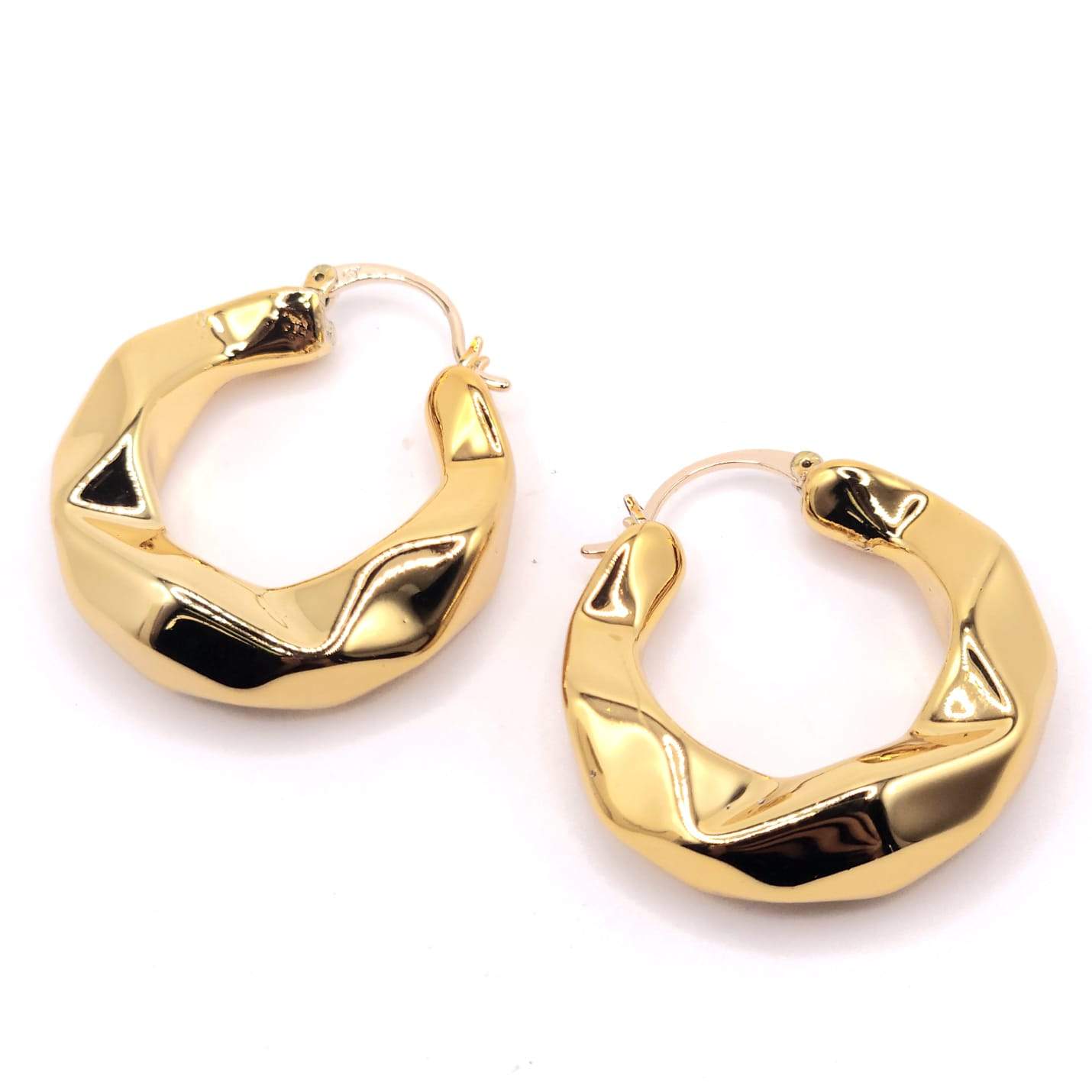 ARGOLLAS GRUESAS CON DISEÑO LARGO 3CM CON CHAPA DE ORO