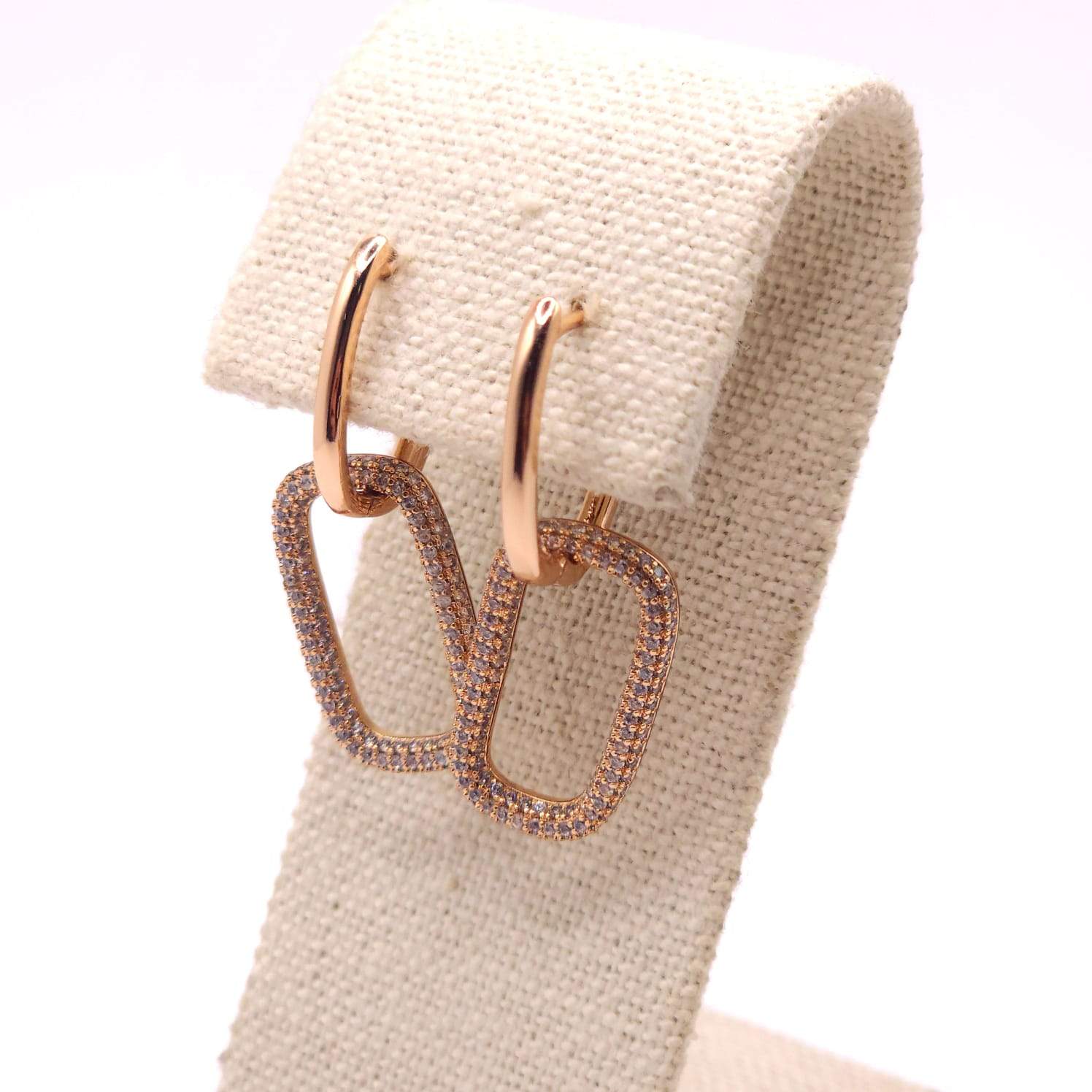ARGOLLA CON DISEÑO DE CADENA, ARGOLLA DE ARRIBA LISA Y ARGOLLA DE ABAJO CON MICROCIRCONIAS CHAPADO EN ORO ROSADO