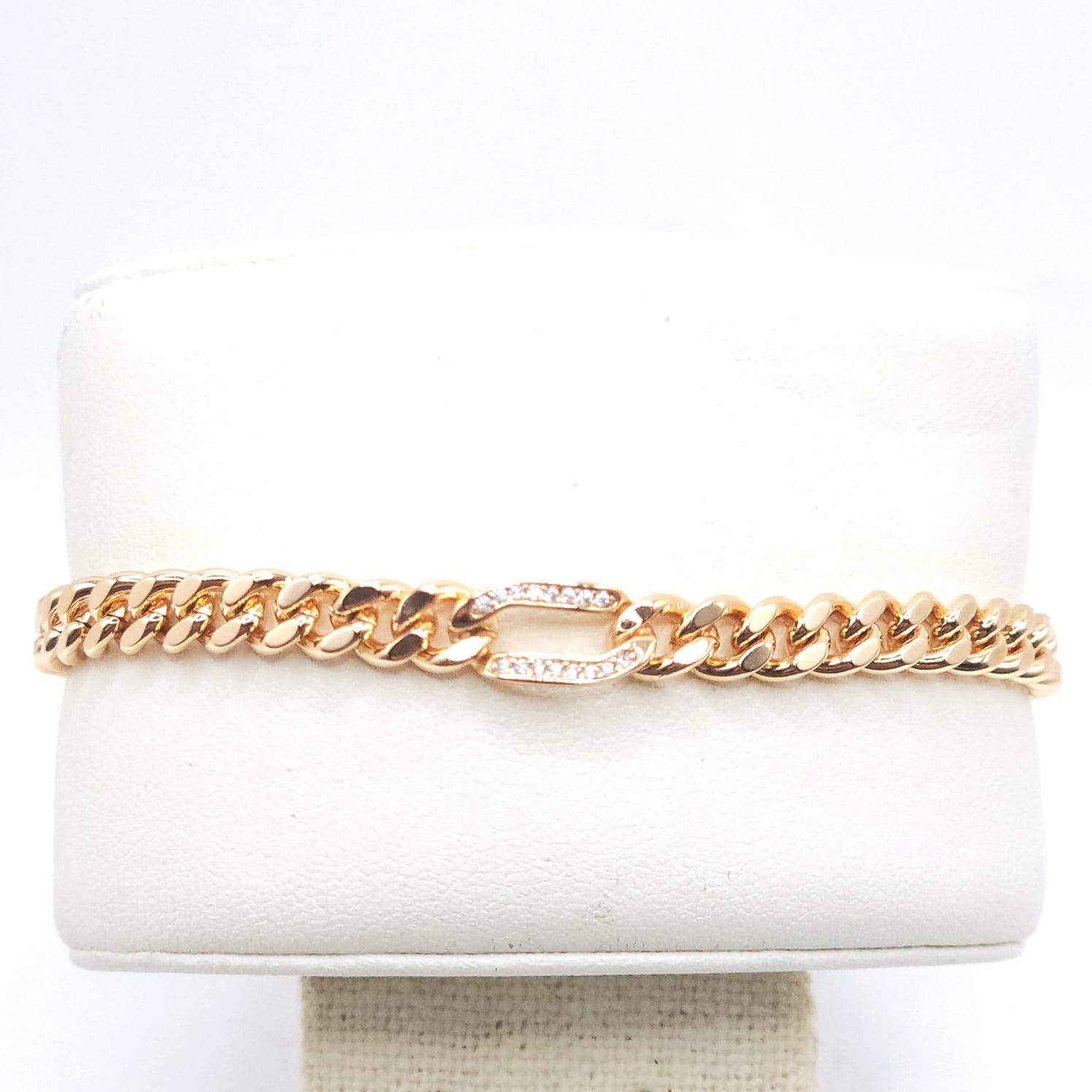 PULSERA CUBANA CON UN ESLABON CENTRAL CON CIRCONIAS (MIDE 17CM)