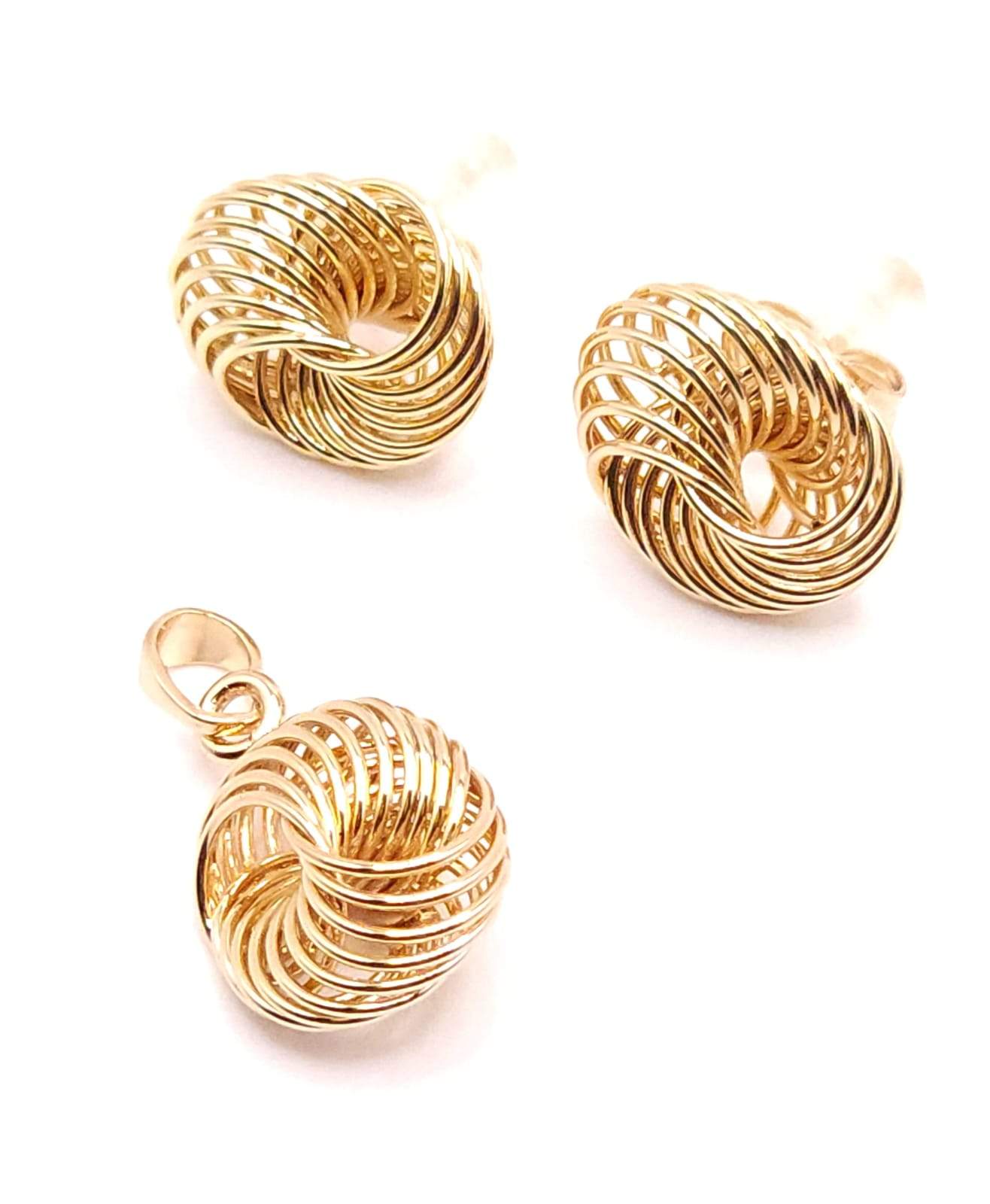 JUEGO DE DIJE Y ARETES CON DISEÑO ESPIRAL EN 3D EN COLOR DORADO
