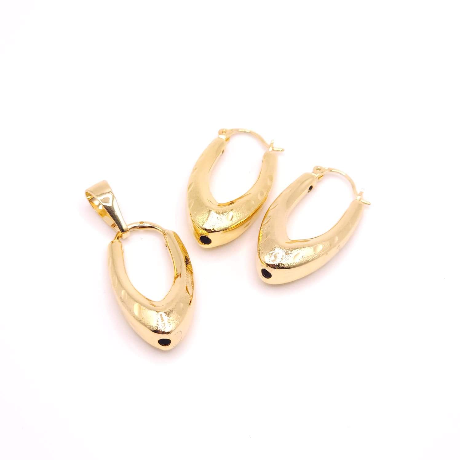 JUEGO DE DIJE Y ARETES DISEÑO EN U CON TEXTURA DE OVALOS EN DORADO