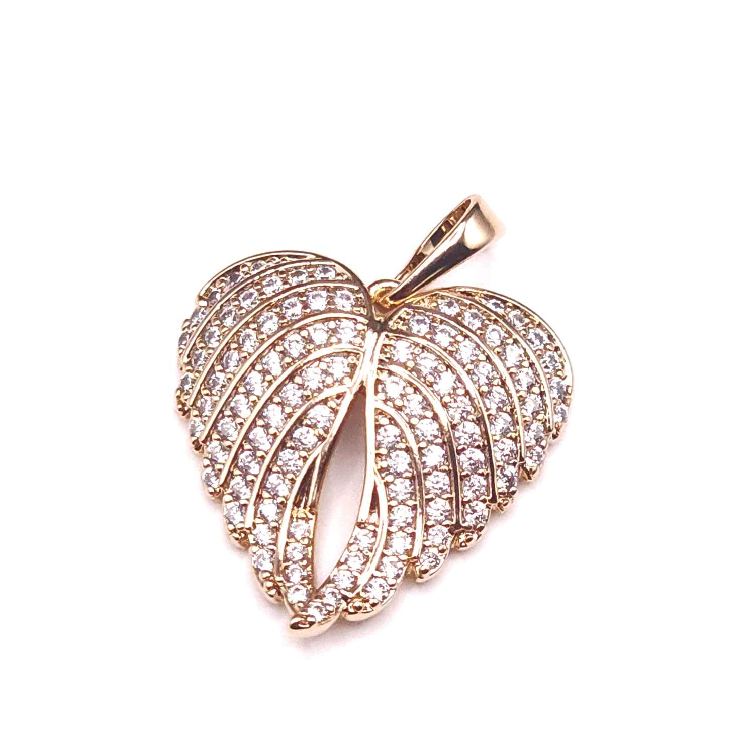 DIJE DE CORAZON CON DISEÑO DE ALAS CON CIRCONIAS BLANCAS