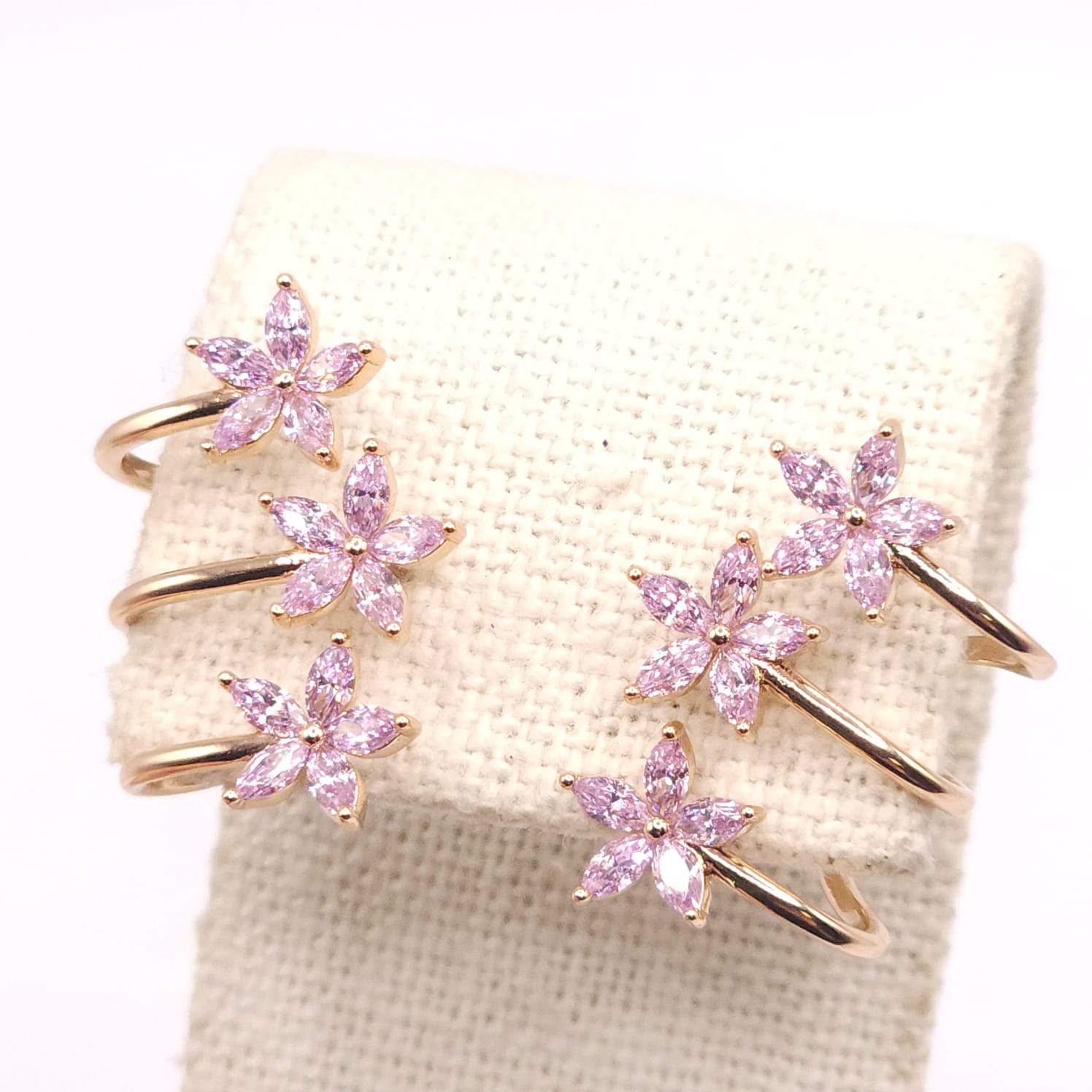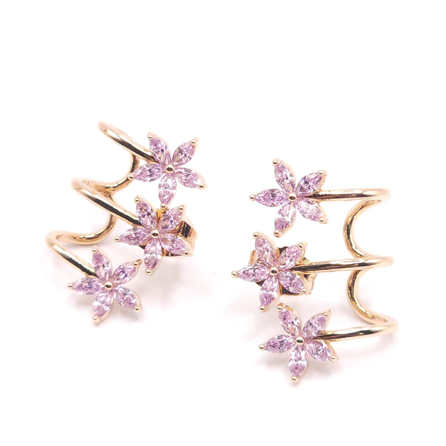 ARETES MINIMALISTAS CON 3 FLORES CON CIRCONIAS ROSADAS DE 5 PETALOS