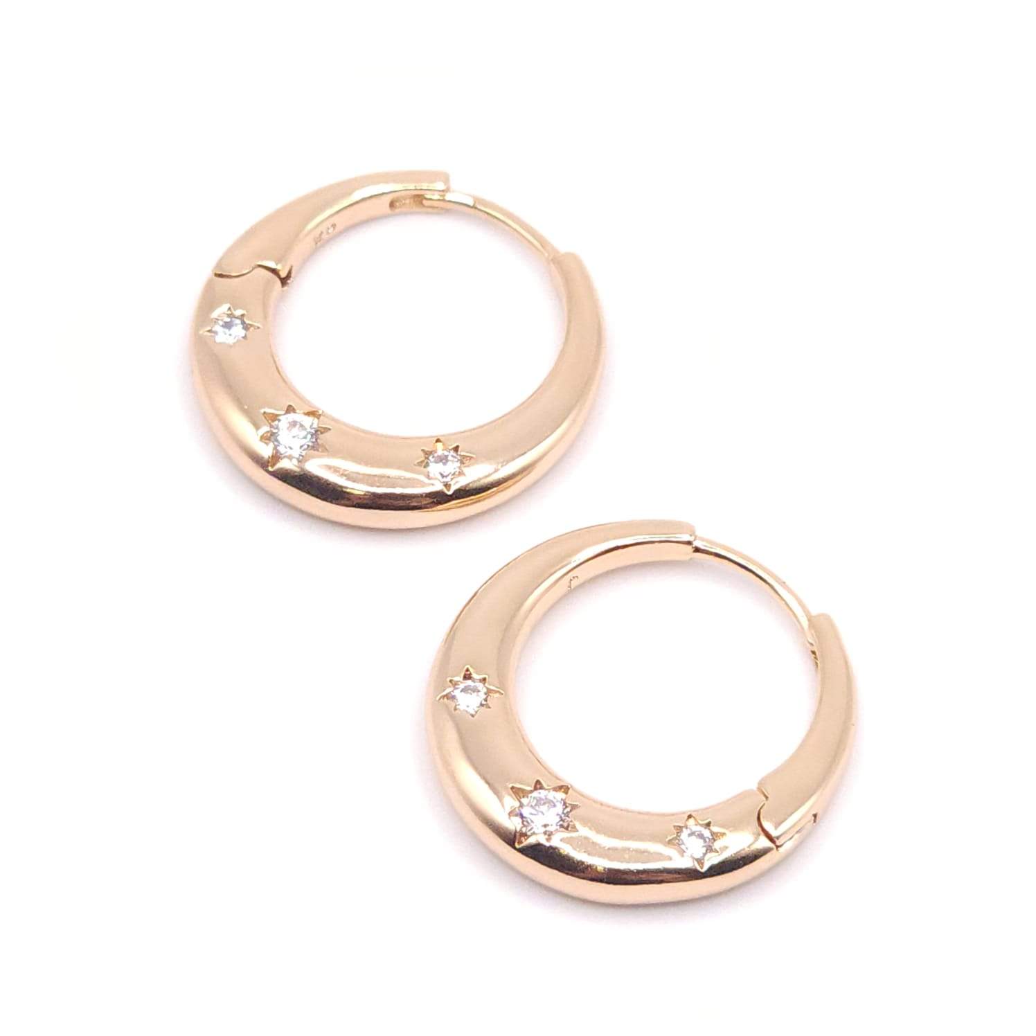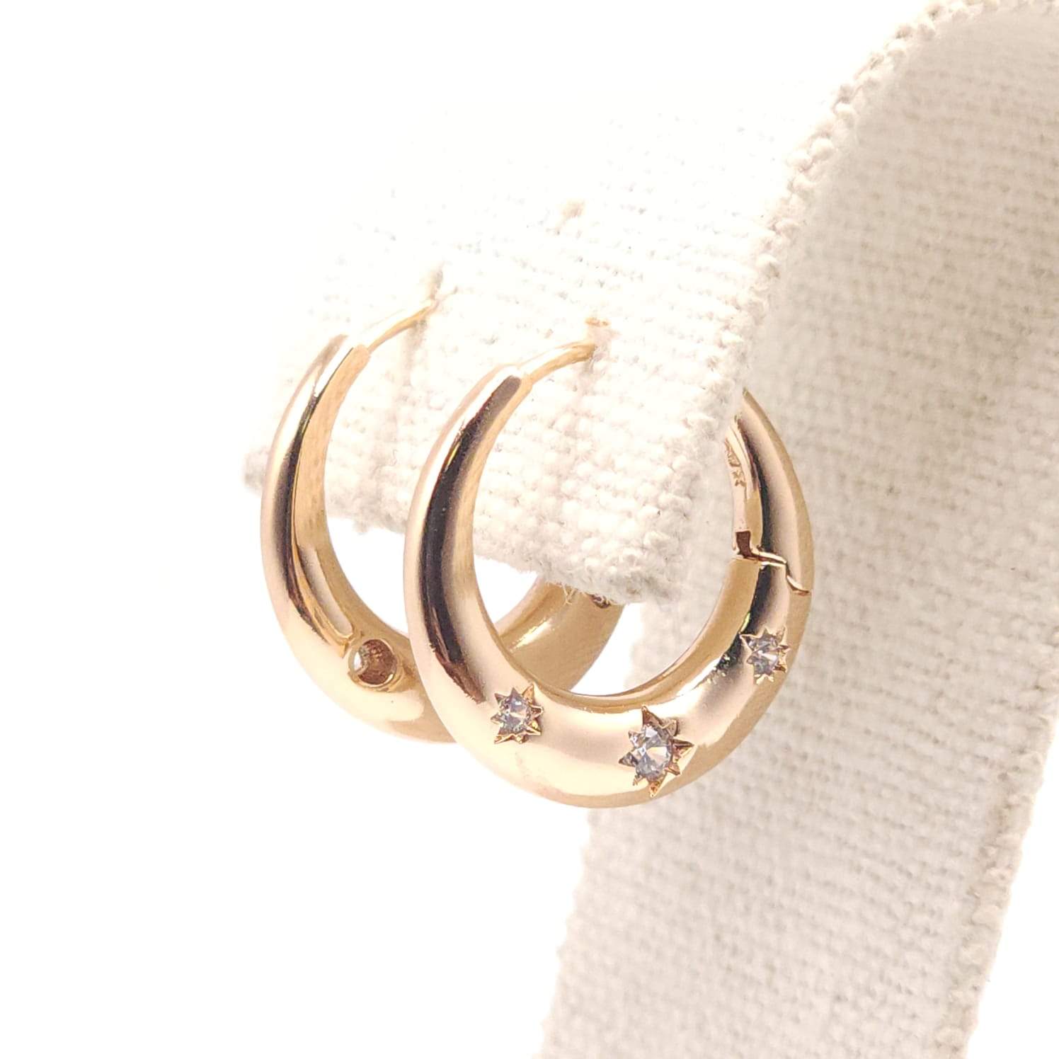 ARGOLLA DE BROCHE HUEGGUIES DISEÑO LISO CON 3 CIRCONIAS FRONTALES