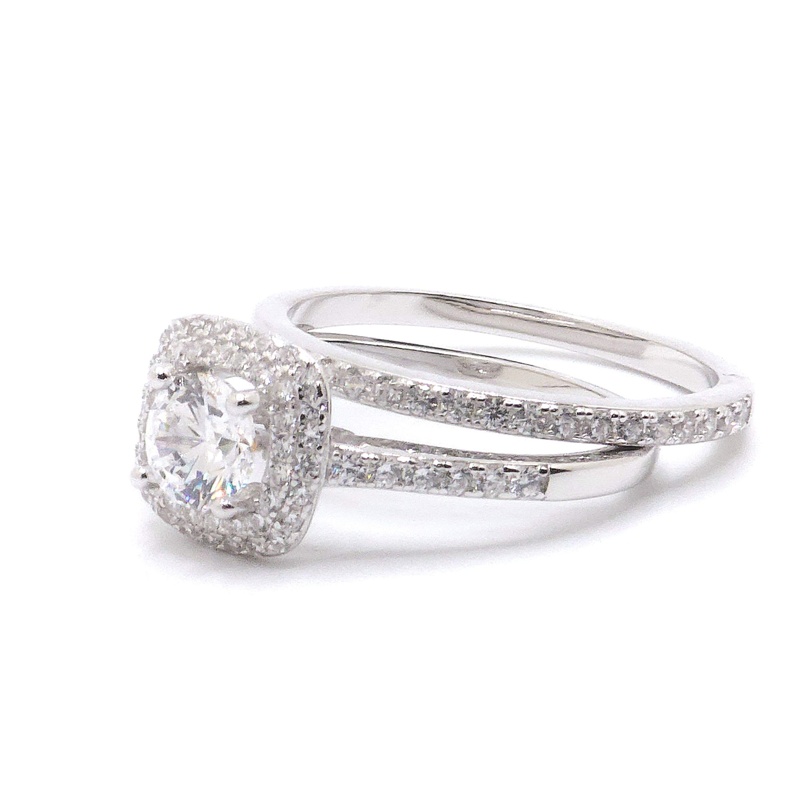JACKET ANILLO DE MONTURA CUADRADA CON CIRCONIA REDONDA INCRUSTADA EN EL CENTRO CON UNA FILA DE CIRCONIAS EN LOS LADOS Y ARGOLLA CON CIRCONIAS FRONTALES