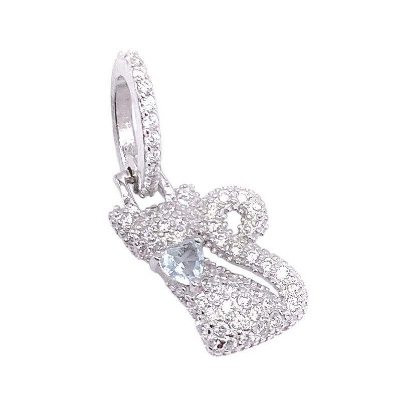 DIJE DE GATITO CON CIRCONIAS BLANCAS Y UNA CIRCONIA EN FORMA DE CORAZON EN COLOR CELESTE