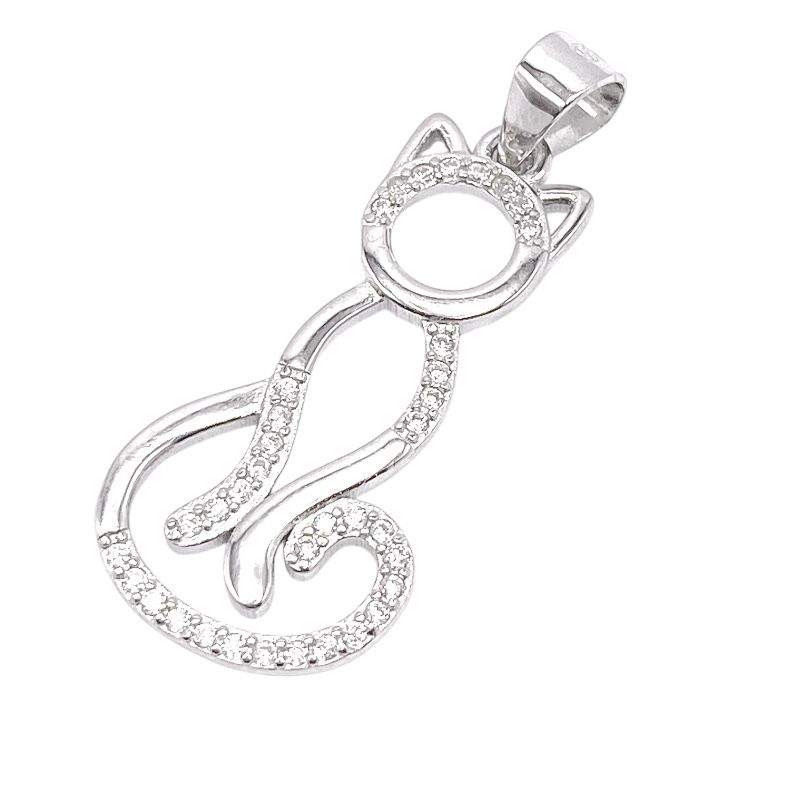 DIJE DE SILUETA DE GATITO CON FRANJAS LISAS Y FRANJAS DE CIRCONIAS BLANCAS