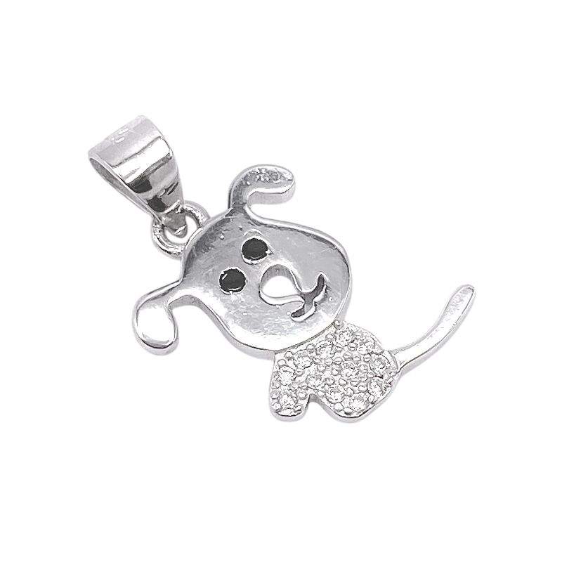 DIJE DE PERRITO CON ROSTRO LISO, CUERPO DE CIRCONIAS BLANCAS Y COLITA LISA
