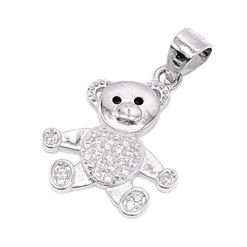 DIJE DE OSITO LISO CON CIRCONIAS BLANCAS EN EL CENTRO EN FORMA DE CORAZON