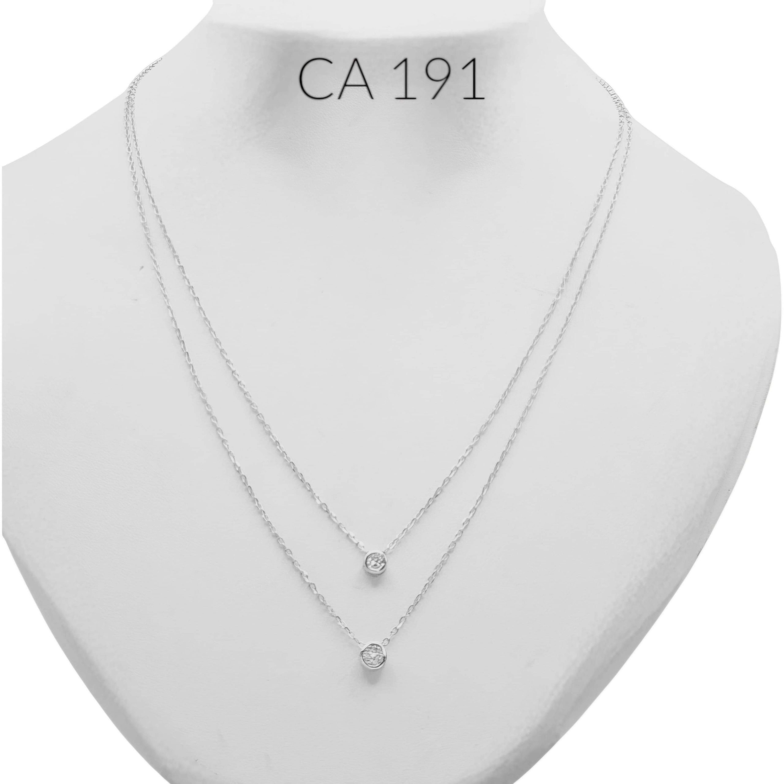 CADENA DOBLE CON UNA CIRCONIA BISELADA Y UN CIRCULO PEQUEÑO DE CIRCONIAS BLANCAS