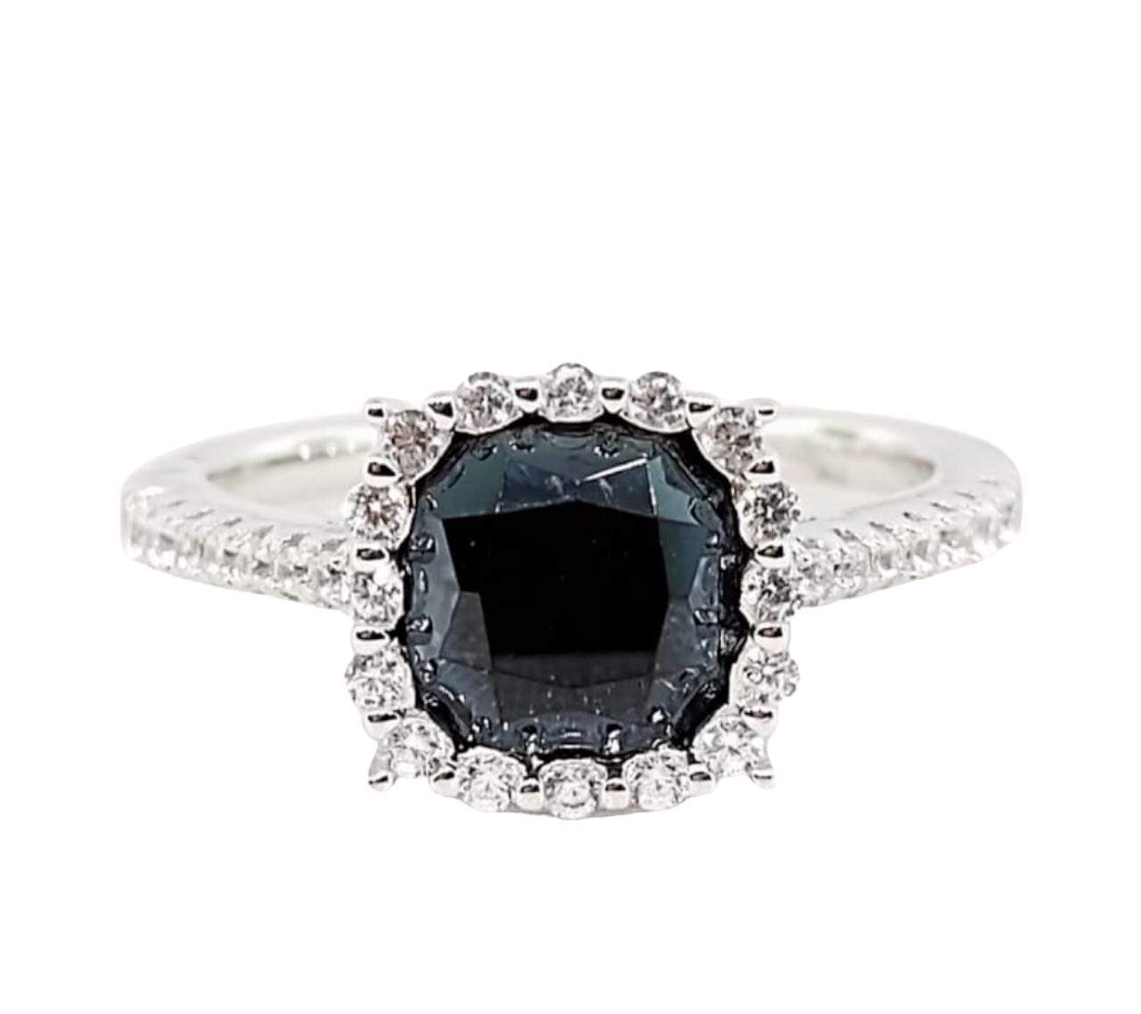 ANILLO CON MONTURA CUADRADA Y CIRCONIA NEGRA RODEADO CON CIRCONIAS BLANCAS