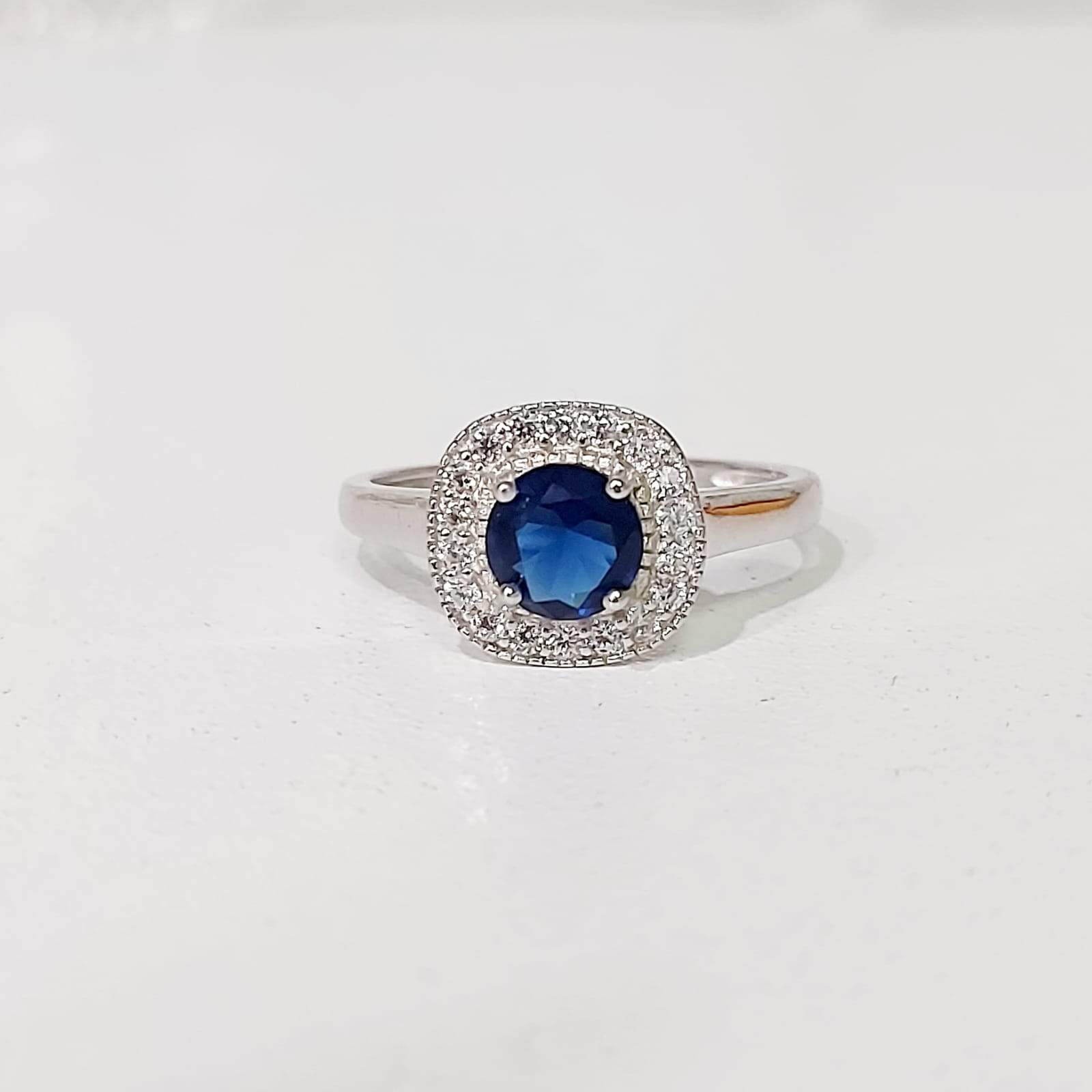 ANILLO CUADRADO CON CIRCONIA AZUL DIAMANTADA Y CIRCONIAS ALREDEDOR 1-11808