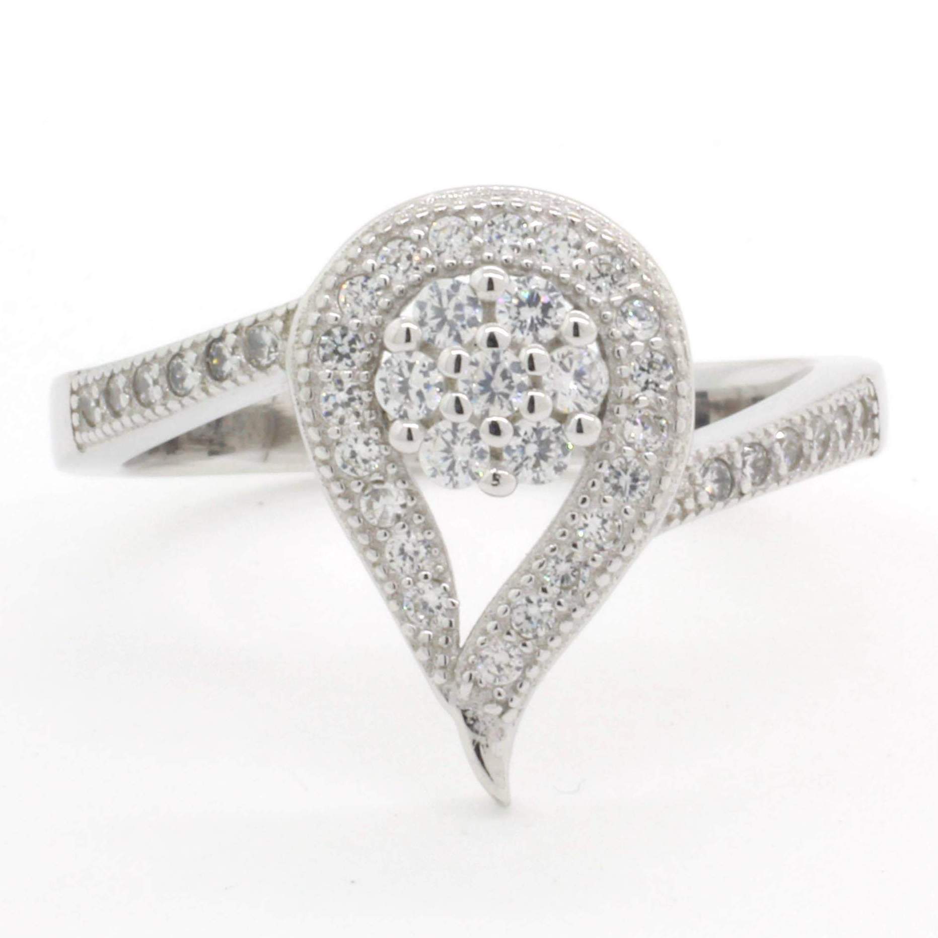 ANILLO DE CIRCONIAS CON FORMA DE GOTA TIENE UNA CIRCONIA EN EL CENTRO 1-06719