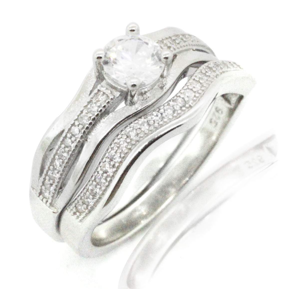 ANILLO DE COMPROMISO Y ARGOLLa CON 2 ONDAS DE CIRCONIAS Y UNA LINEA DE CIRcONIAS 1-09232