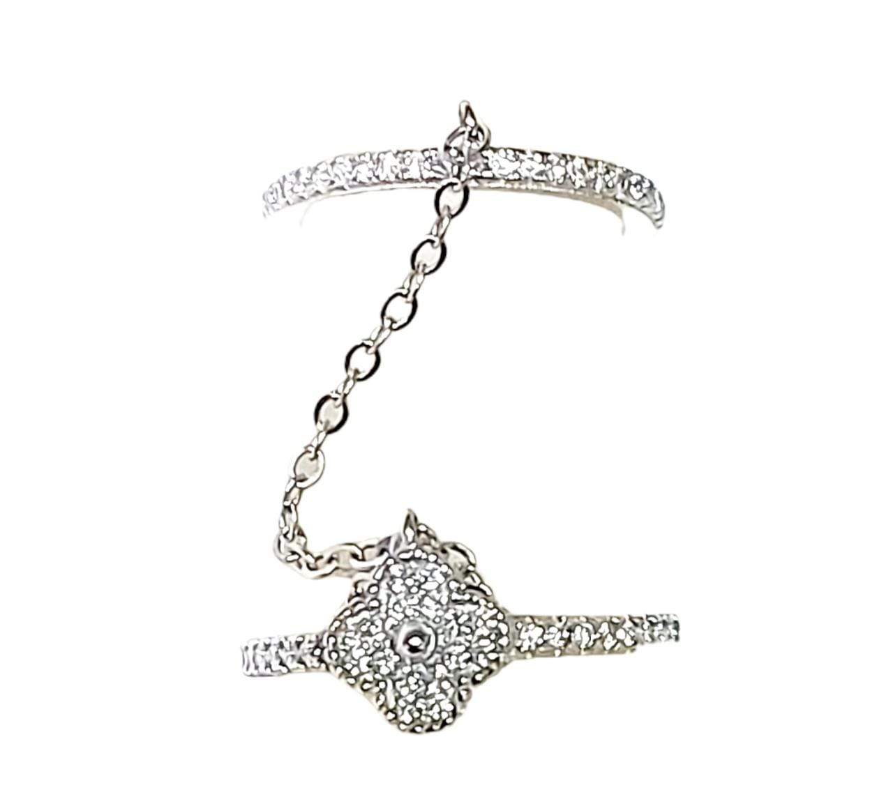 ANILLO DOBLE CON CADENA EN DISEÑO DE TREBOL EN PLATA 925