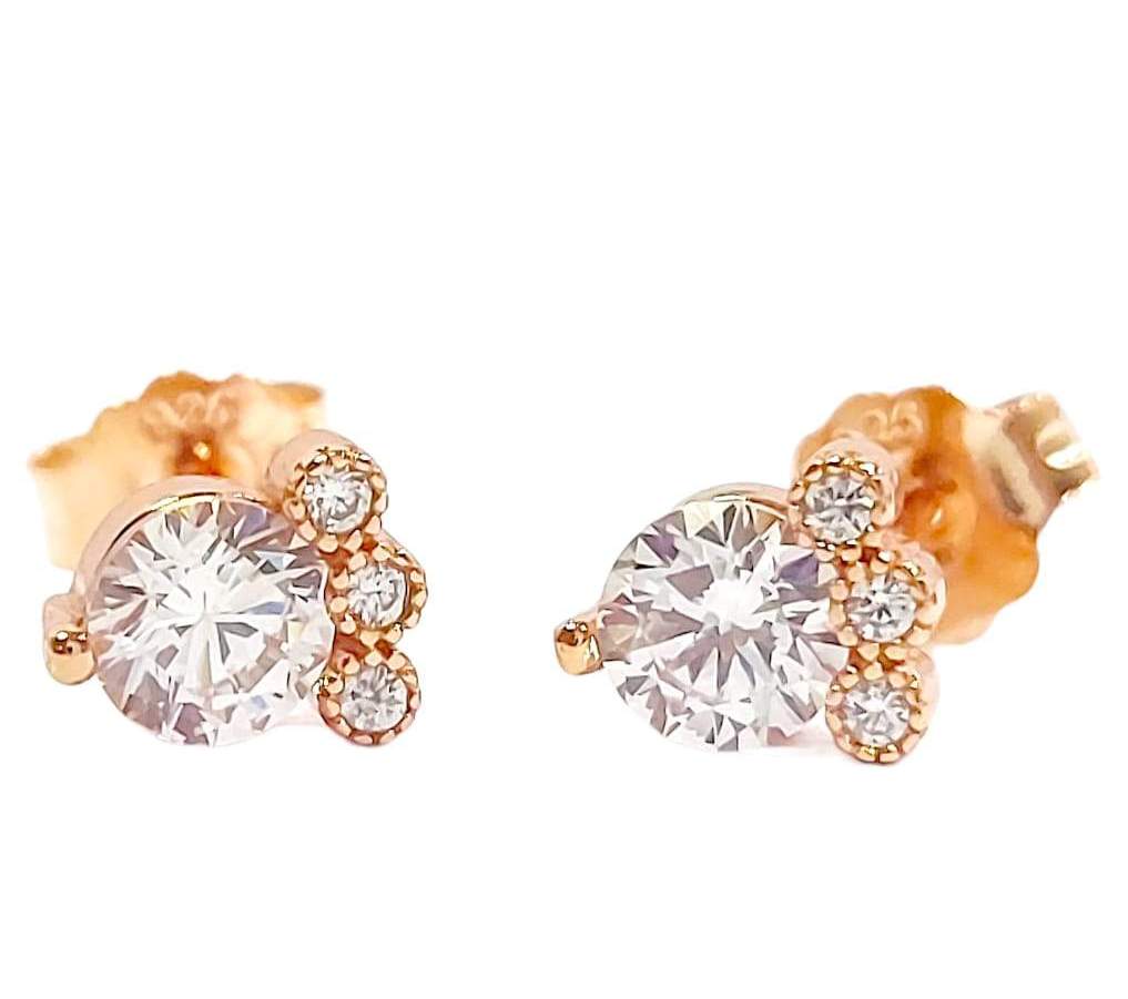ARETES CIRCONIA FORMA DE GOTA CON 3 CIRCONIAS PLATA 9.25 CON BAÑO DE COLOR ROSA CON POSTE