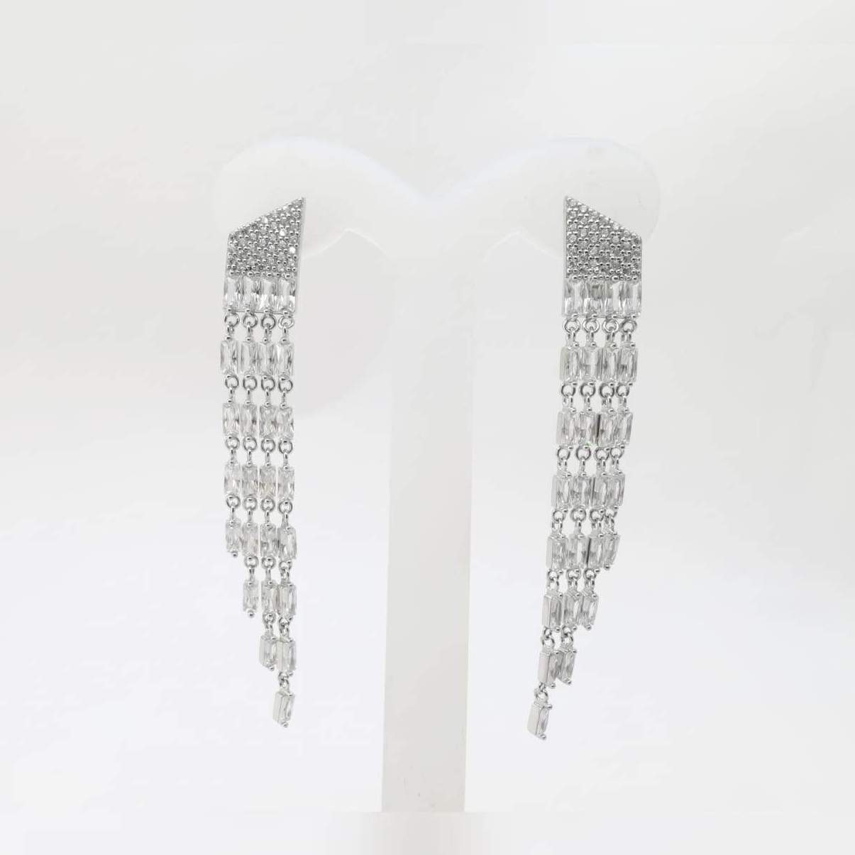 ARETES DE PLATA LARGOS CON BASE CON UN TRAPECIO CON CUATRO BAGUETE Y CUATRO CADENAS EN DISMINUCION CON BAGUETTE 1-11713