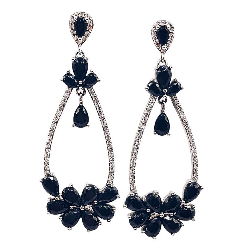 ARETE FORMA DE GOTA CON CIRCONIAS NEGRAS 3 ARRIBA Y 8 ABAJO