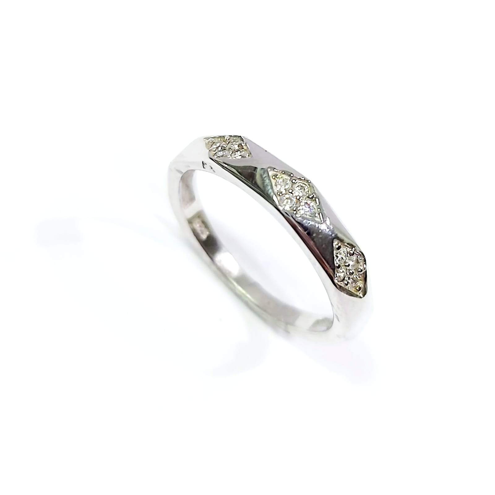 ARGOLLA DE DAMA CON 3 ROMBOS CON CIRCONIAS PLATA 9.25