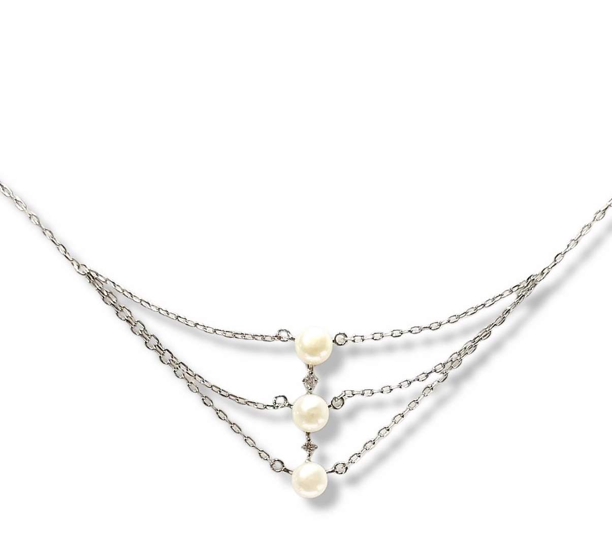 GARGANTILLA CON DIJE DE 3 PERLAS Y 3 CIRCONIAS EN CASCADA EN PLATA 9.25