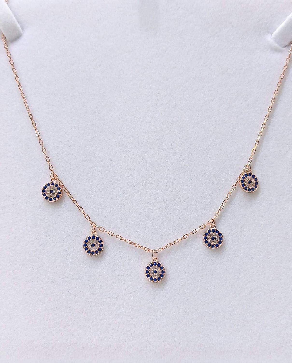 CADENA ORO ROSA CON CIRCULOS DE CIRCONIAS AZULES EN PLATA 9.25