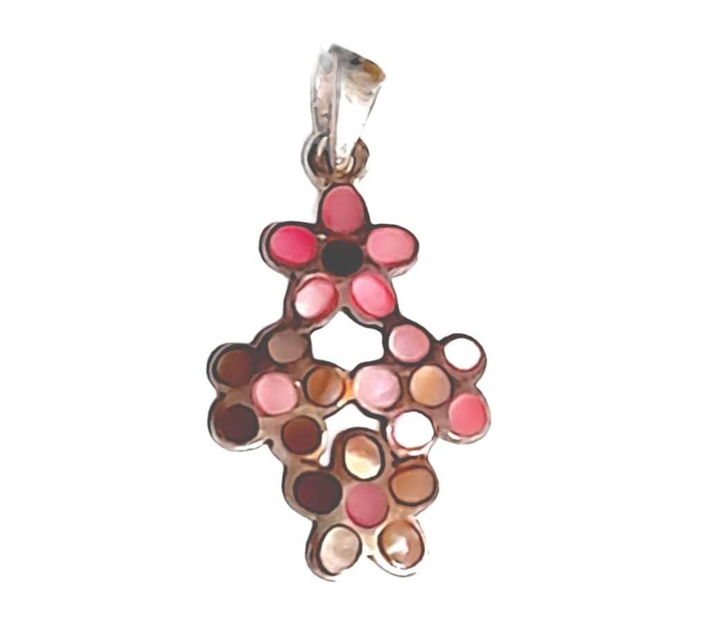 DIJE CON 4 FLORECITAS COLOR ROSA DE CONCHA NACAR