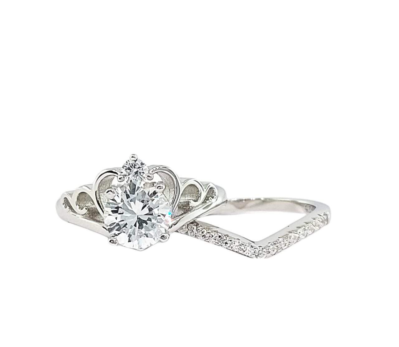 JACKET CORONA CORAZON CON 1 CIRCONIA Y ARGOLLA CON CIRCONIAS ENLAZA CON ANILLO