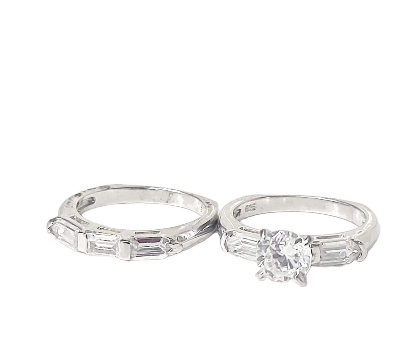 JACKET ESTILO CUADRADO CON CIRCONIAS ALARGADAS Y ANILLO CON UNA CIRCONIA REDONDA EN EL CENTRO # 6