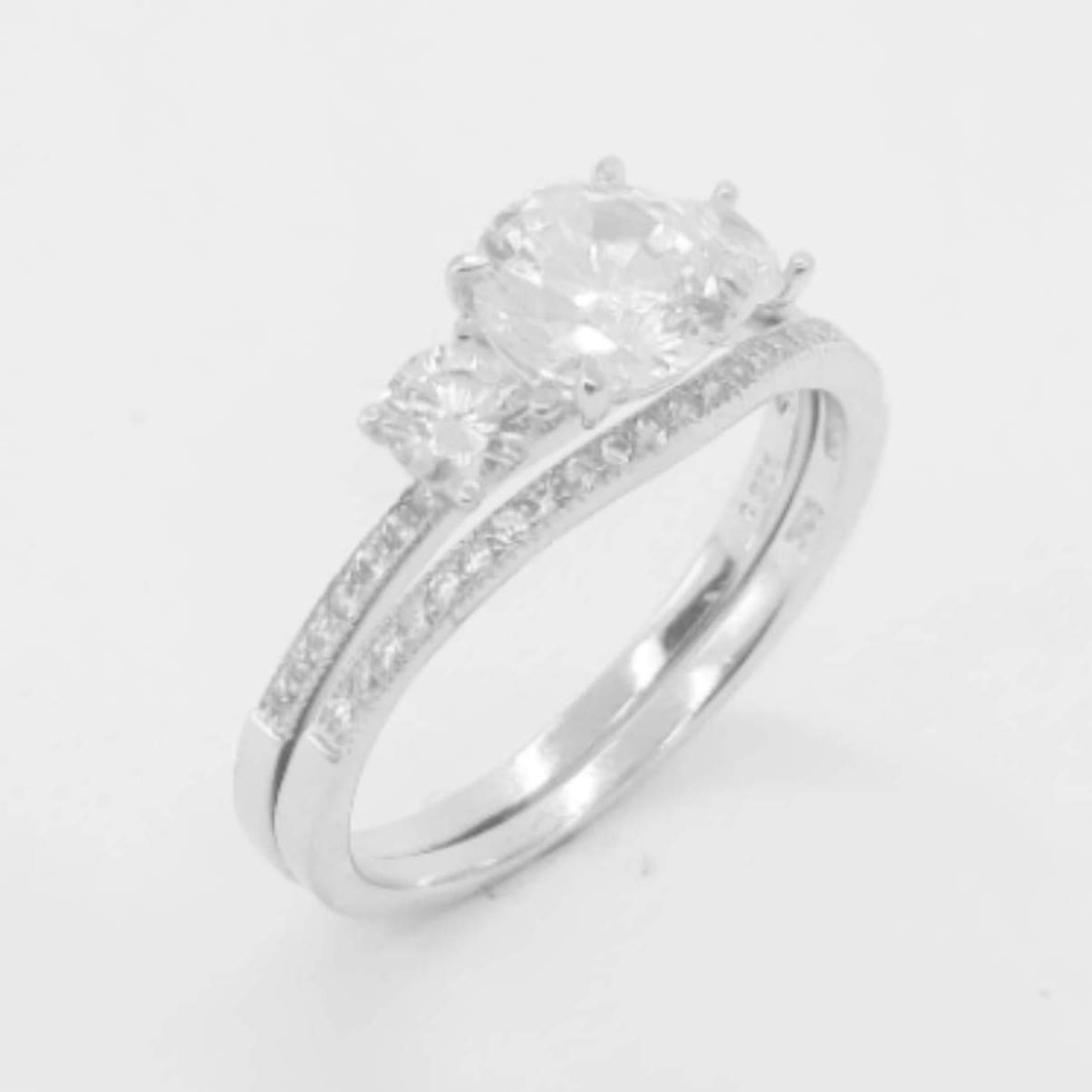 JUEGO DE ANILLO CON 3 CIRCONIAS Y ARGOLLA ONDULADA QUE CAZA CON EL ANILLO 1-10149