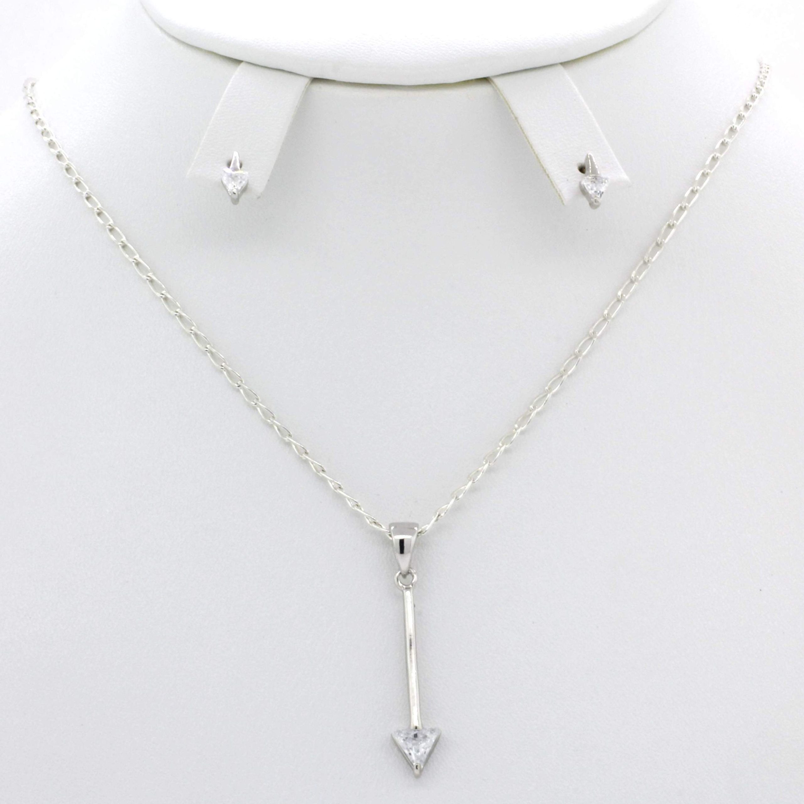 JUEGO DE DIJE Y ARETES DE POSTE DE FLECHA CON CIRCONIA (NO INCLUYE CADENA)